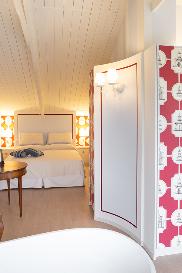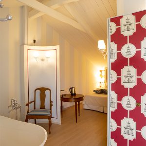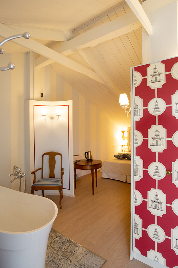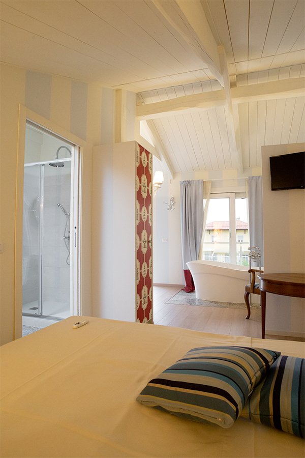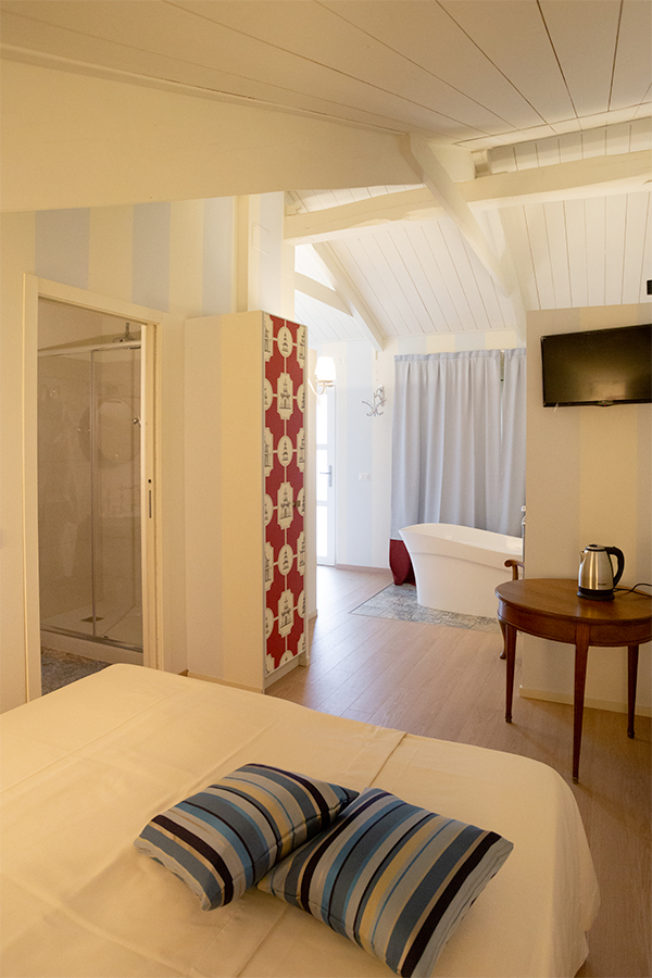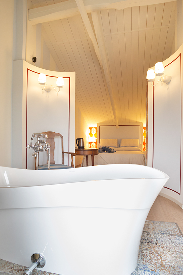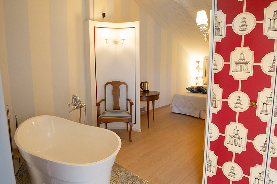 Lasciatevi trasportare dalla dorata effervescenza dello champagne mentre siete nella vostra vasca da bagno stile liberty di fronte ad una vetrata con vista sulla valle. Siete nella stanza Pinot Noir. Niente è impossibile alla Maison Petit Perlage e se vorrete concedervi uno stravagante bagno nello champagne si potrà fare! Di che personalità siete? Rosé, Blanc de Blancs o Millesimato? La scelta sarà comunque emozionante ed unica (tariffe e condizioni da richiedere al momento della prenotazione).
